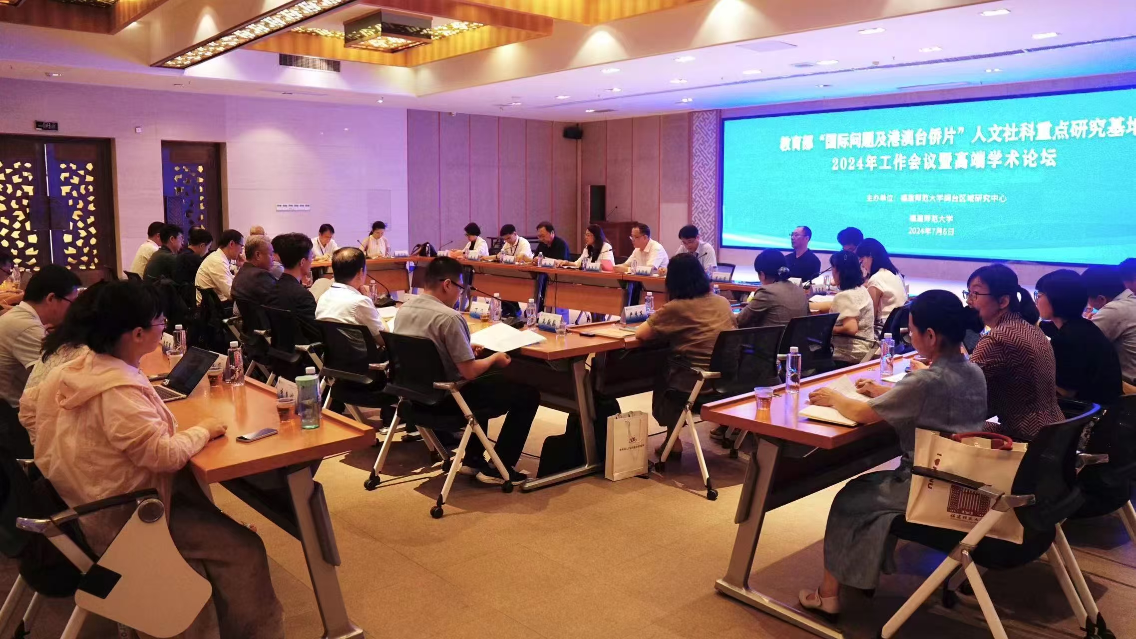 2024年7月6日,中山大学港澳珠江三角洲研究中心副主任袁旭阳与郭宇菲副教授赴福建师范大学旗山校区,参加“教育部‘国际问题及港澳台侨片’人文社科重点研究基地2024年工作会议暨高端学术论坛”。教育部社科司二级巡视员梅红、中国哲学社会科学管理创新研究中心常务副主任石鉴、福建师范大学校长王长平,以及来自教育部“国际问题及港澳台侨片”13个人文社科重点研究基地的负责人共同出席了会议。