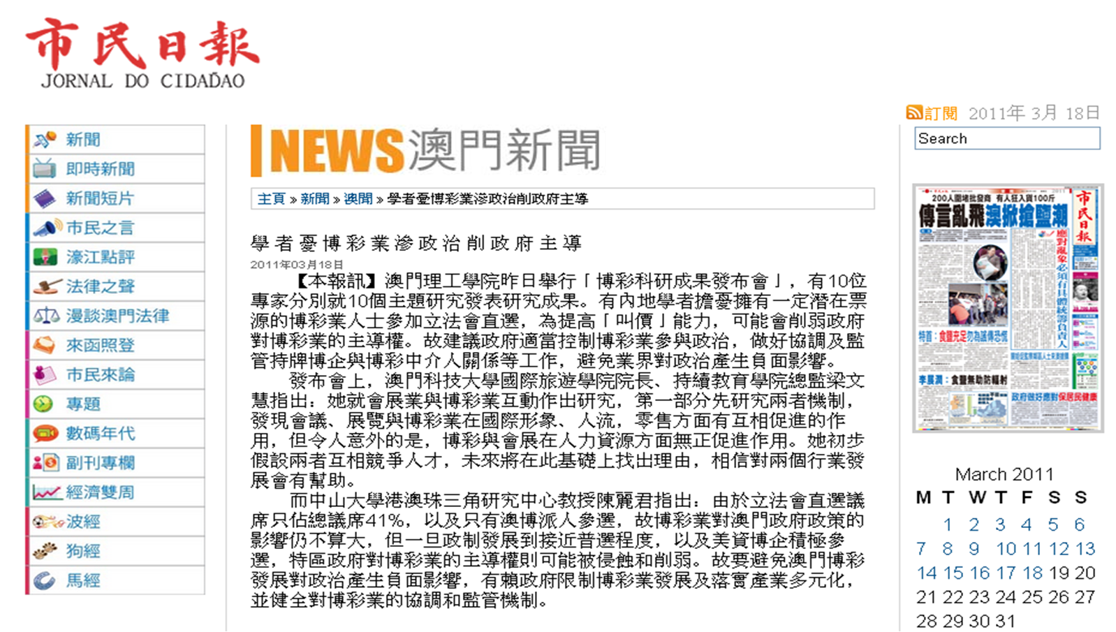 博彩研究成果发布会在澳门取得巨大反响。澳门广播电视台、澳门日报、市民日报、华侨报以及澳门会展经济报等澳门媒体详细报道了成果发布会实况。