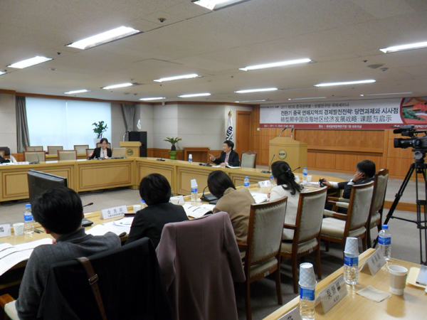 应韩国对外经济研究院(KIEP)的邀请,中心主任陈广汉教授于11月22日-25日赴韩国参加由该院主办的《转型期中国沿海地区经济发展战略》研讨会,做了题为《广东省城市发展规划及其展望》的报告,并受会议委托主持第一阶段论坛。在论坛开始前,陈广汉教授拜会了韩国对外经济政策研究院察旭院长,签署了中山大学港澳珠三角研究中心与韩国对外经济政策研究院开展学术交流和合作的协议。