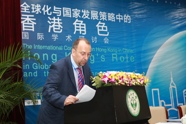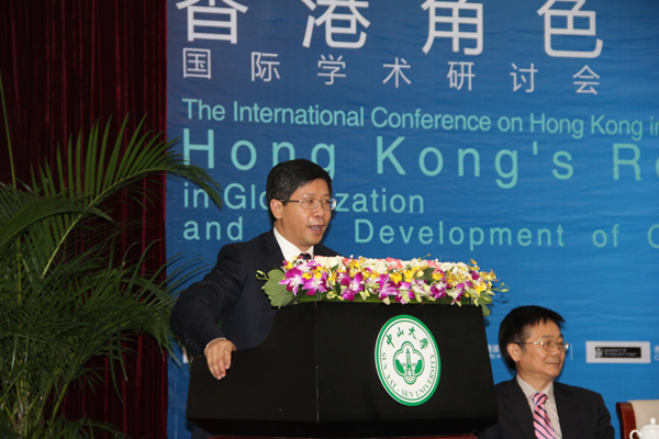 14日至15日,会议的广州论坛以“全球化与国家发展策略中的香港角色”( Hong Kong ’s role in globalization and the Development of China)为主题,探讨香港在国家发展中的地位和作用、香港与内地跨界合作及竞争,跨境人口流动及融合、香港政治发展模式和社会管理制度及其对内地的启发、香港与新加坡发展经验的比较等议题。香港浸会大学当代中国研究中心所长薛凤旋教授、香港中文大学地理与资源管理系沈建法教授、台湾国立政治大学国际经营与贸易学系陈坤铭教授、中山大学港澳珠江三角洲研究中心主任陈广汉教授为大会作主题报告。中山大学副校长魏明海教授,中央社会主义学院黄易宇副院长、国务院港澳事务办公室港澳研究所陈多所长、香港浸会大学社会科学院院长Adrian Bailey教授以及悉尼理工大学中国研究中心主任 Maurizio Marinelli教授等在开幕式致辞。会议分四个论坛,发表论文五十多篇。在经济、政治、法律及社会文化领域深入探讨和充分交流。