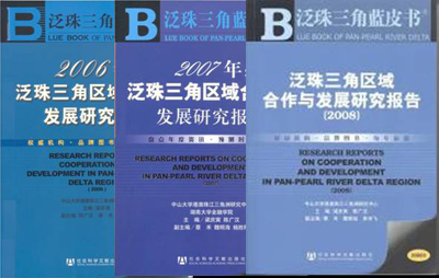 《泛珠三角区域合作发展研究报告》(2006-2008):该丛书由梁庆寅副校长为主编,陈广汉等教授为副主编的2006年~2008年度《泛珠三角区域蓝皮书》由我中心组织编撰和出版该书是国内第一部研究泛珠三角区域合作与发展的蓝皮书,是发挥我校多学科和综合性研究优势的一项重要成果。