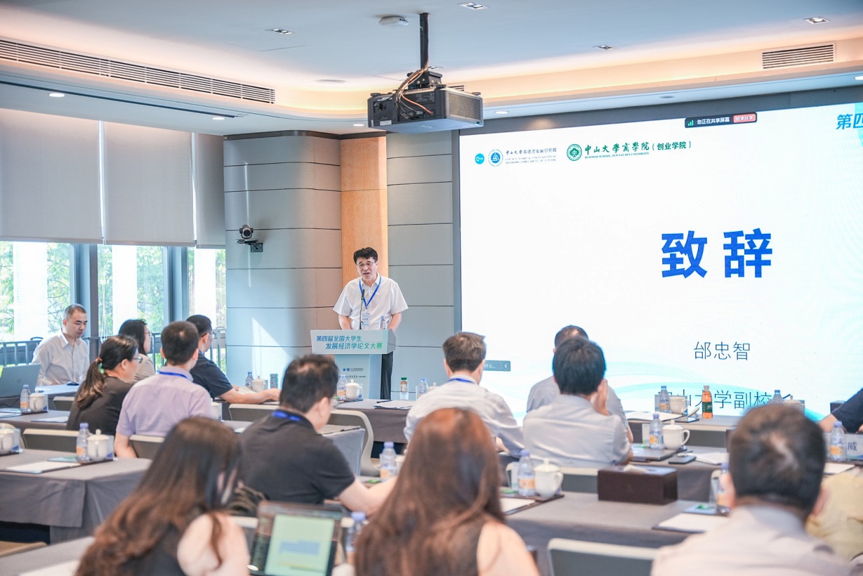 6月29至30日,由中山大学粤港澳发展研究院、商学院(创业学院)主办的第四届全国大学生发展经济学论文大赛在深圳前海举行。中山大学副校长邰忠智出席开幕式并致辞。进入终评论文的青年学生以及经济学科专家学者齐聚深圳前海,在交流分享答辩评审中碰撞思想火花,为以高质量发展推动中国式现代化建言献策。本次大赛得到了全国各所高校本科生、硕士研究生、博士研究生的广泛关注和踊跃投稿。共收到论文543篇,最终共有45篇论文进入终评环节,其中本科生18篇,硕士研究生15篇,博士研究生12篇。经汇报答辩等比赛环节,本次大赛共评选出一等奖论文6篇、二等奖论文12篇、三等奖作品27篇。