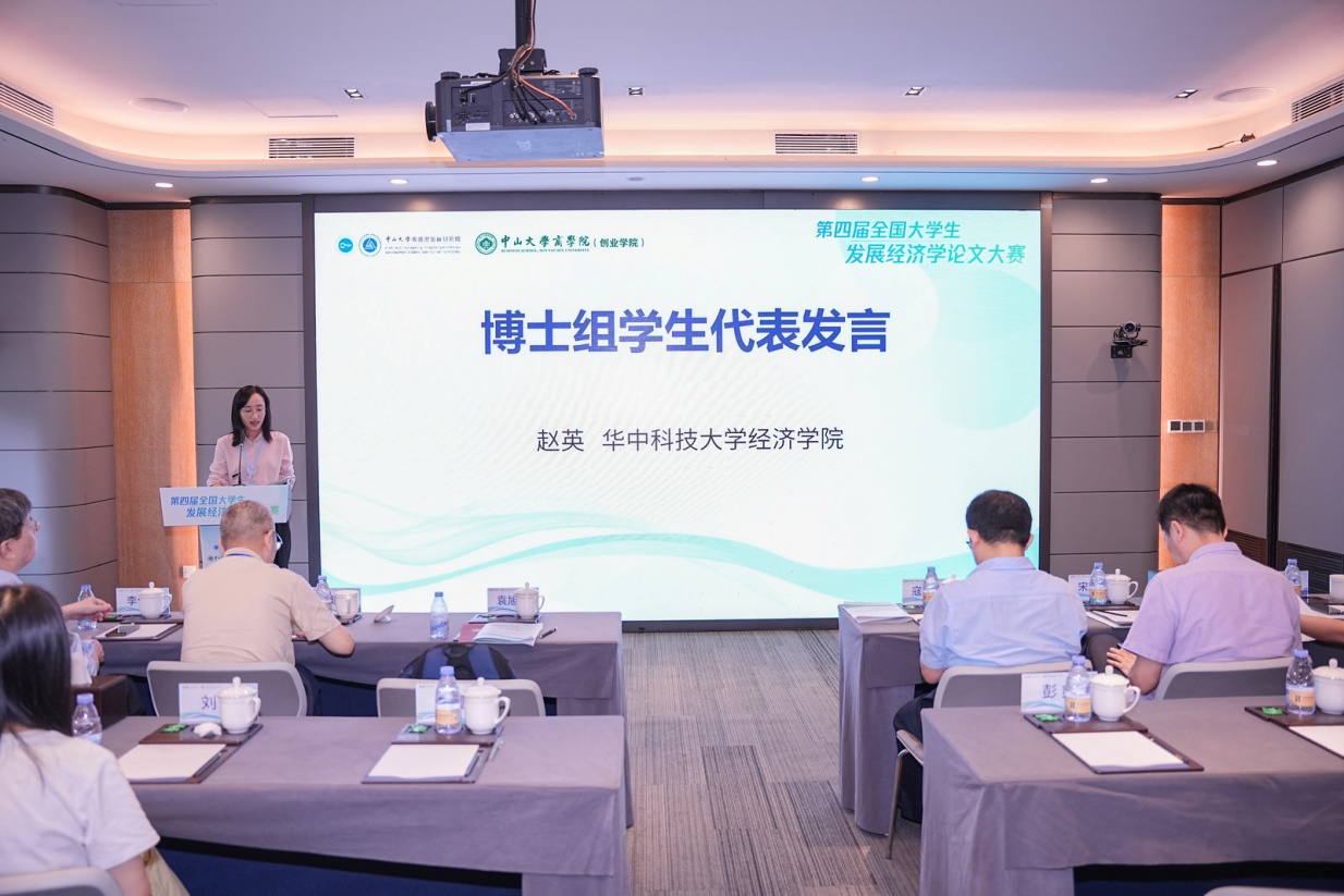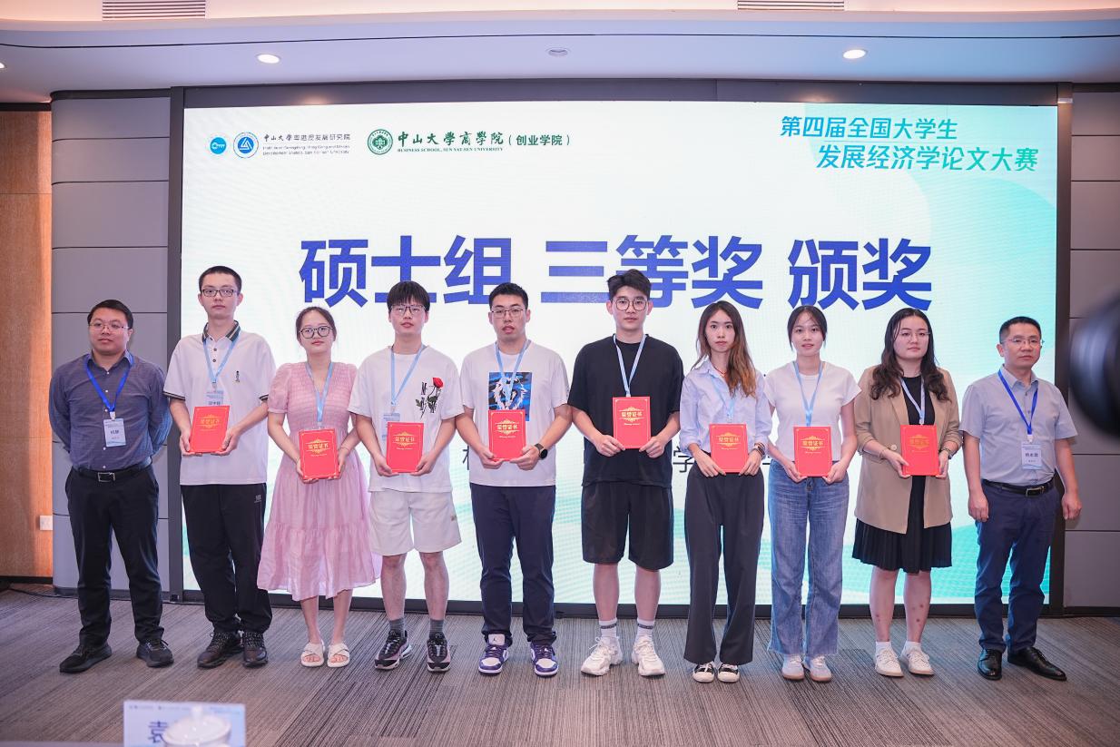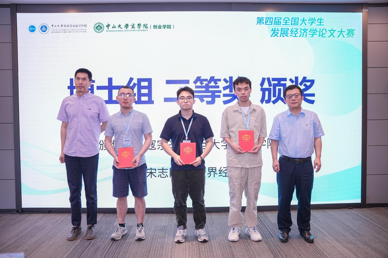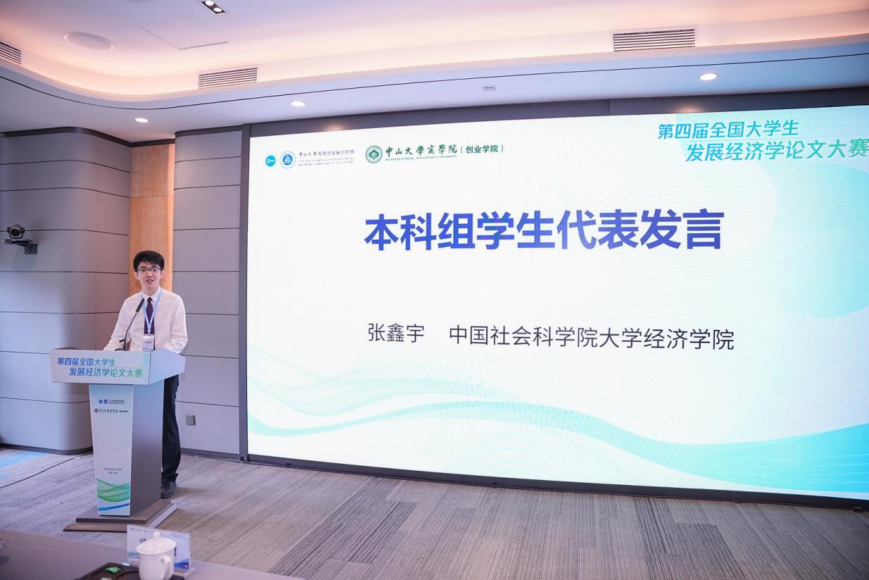 最终的比赛结果在6月30日上午举行的第四届全国大学生发展经济学论文大赛颁奖典礼暨闭幕式上揭晓。颁奖典礼暨闭幕式由中山大学粤港澳发展研究院党委书记、副院长袁旭阳主持。颁奖嘉宾为获奖学生进行颁奖。中国社会科学院大学经济学院本科生张鑫宇代表本科生组、武汉大学经济与管理学院硕士研究生杨润杰代表硕士研究生组、华中科技大学经济学院博士研究生赵英代表博士生组进行获奖发言,表示作为参赛者参与发展经济学论文大赛是对于自己学术成长的见证,感谢主办方与各位评审老师的大力支持,论文大赛是对自己一路坚持与努力的最大肯定。