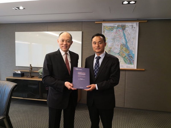 张光南教授还向霍震寰先生赠送了最新出版的《粤港澳大湾区可持续发展指数报告》、《港澳青年内地创业——企业案例?创业者故事?政府政策》、《粤港澳服务贸易自由化“负面清单”升级版:清单方案、政策创新、示范基地》等著作。