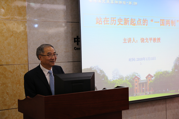 1月15日,中山大学粤港澳发展研究院举办粤港澳发展高端讲坛第一讲,北京大学法学院教授、北京大学港澳研究中心主任、全国港澳研究会副会长、全国人大常委会香港基本法委员会委员饶戈平作了题为“站在历史新起点的‘一国两制’”的演讲。中山大学原党委书记、粤港澳发展研究院原院长、研究院副理事长郑德涛教授出席活动。本次活动由粤港澳发展研究院首席专家、副院长陈广汉教授主持。