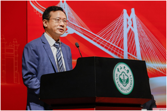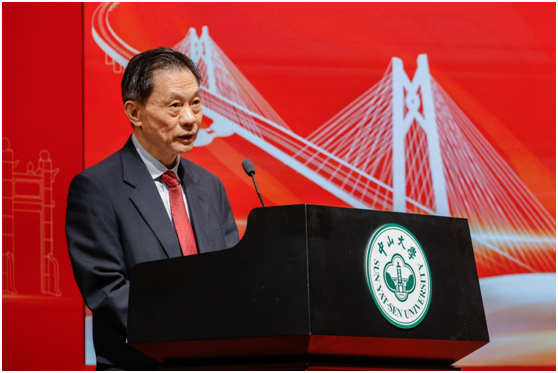 全国人大常委会港澳基本法委员会代表研究室副主任曾军荣在会上宣读了全国人大常委会香港基本法委员会、澳门基本法委员会的贺信。信中表示,中山大学历来是港澳研究领域的重镇,从1983年成立港澳研究所,到2015年成立粤港澳发展研究院,中山大学在港澳研究领域始终扮演重要角色,成果丰富,成绩斐然。希望中山大学未来紧紧围绕国家发展重大战略,强化前瞻性、基础性、对策性研究,不断开创港澳研究新局面,为“一国两制”伟大事业行稳致远,宪法和基本法全面准确实施做出重要贡献。
